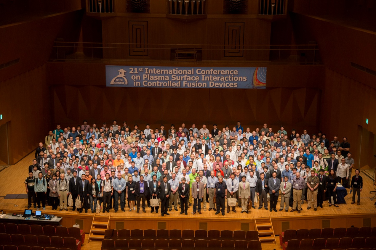 2014年5月26-30日,第二十一届等离子体与壁材料相互作用会议(21st International Conference on Plasma Surface Interactions in Controlled Fusion Devices,http://psi2014.nifs.ac.jp/welcome.html )在日本金泽召开。课题组王德真教授,孙继忠教授,刘升光博士,桑超峰博士,戴舒宇博士,黄艳 研究生等一行六人参加了此处会议,会议共聚集了来自欧洲、美国、日本、中国、韩国、俄罗斯、印度等主要国家的300多位科学家。